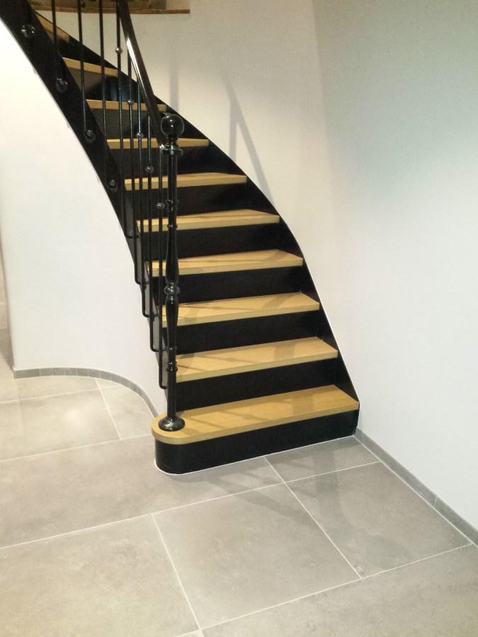 Escalier ¼ tournant en hêtre avec garde corps en verre