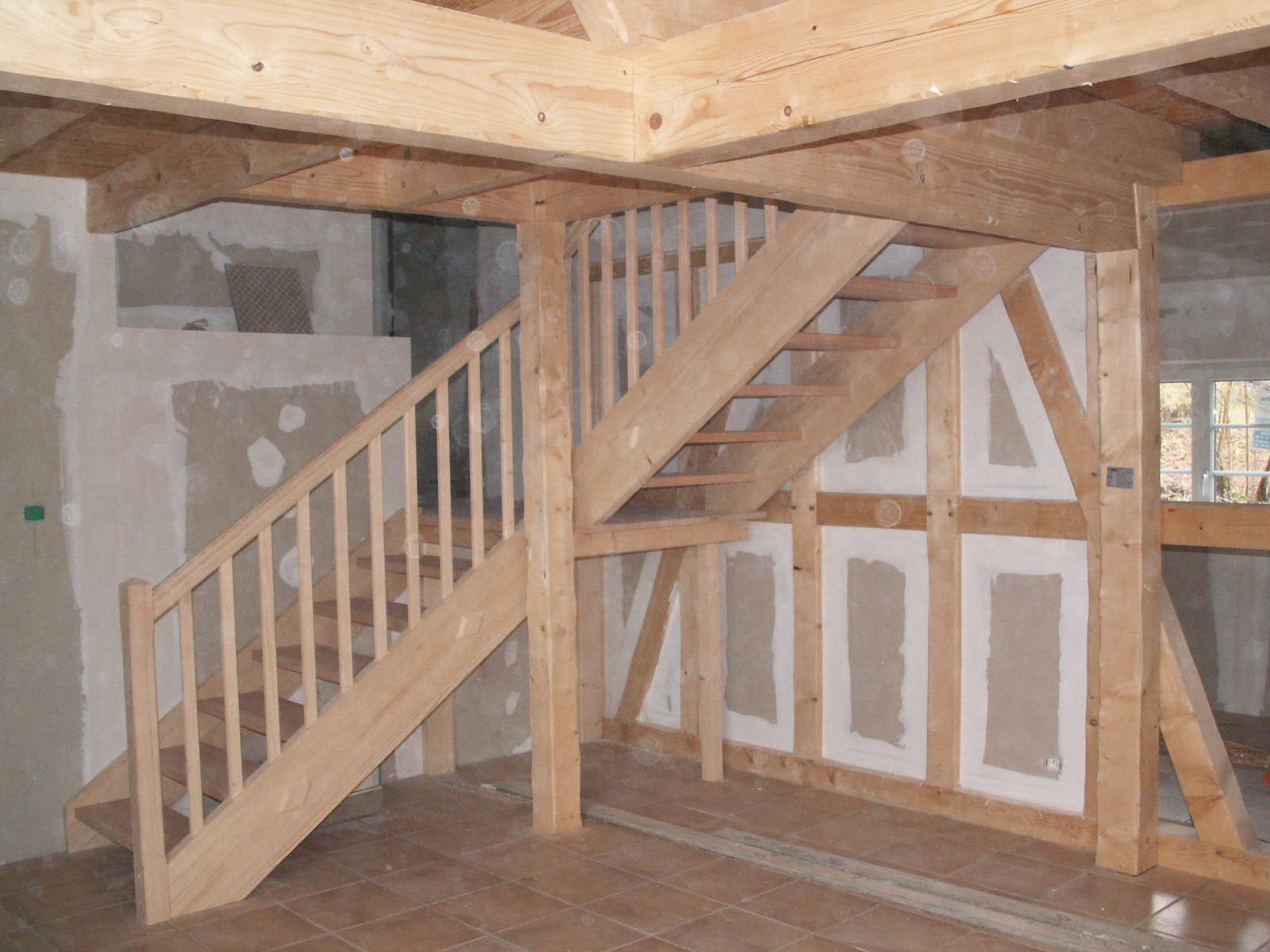 escalier ¼ tournant avec palier (hêtre et sapin)