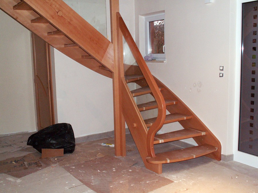 Escalier ¼ tournant en hêtre avec garde corps en verre