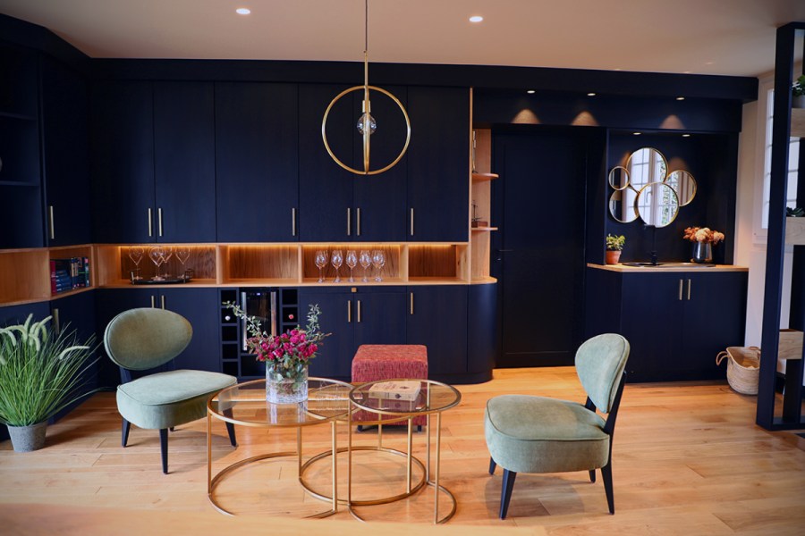 Salle de dégustation en chêne et panneaux stratifiés